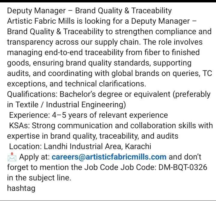 Artistic Fabric Mills *Deputy Manager* 100jobs.store Posted on March 18, 2026 Posted in Uncategorized No Comments Share with LoveTweet